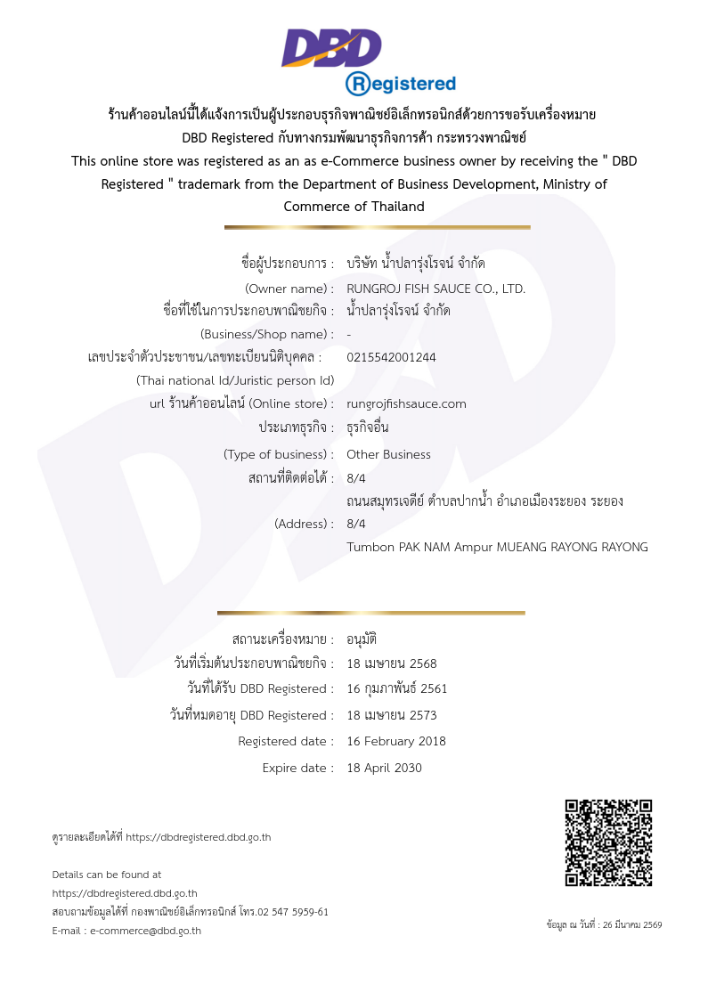 อ่านต่อ...จุดเริ่มต้นของเราเกิดขึ้นในปี พ.ศ. 2494 ณ จังหวัดระยอง ริมอ่าวไทย แหล่งกำเนิดน้ำปลาคุณภาพของประเทศไทย เราดำเนินธุรกิจในรูปแบบบริษัทครอบครัว โดยยึดมั่นในองค์ความรู้และภูมิปัญญาที่ถ่ายทอดจากรุ่นสู่รุ่น